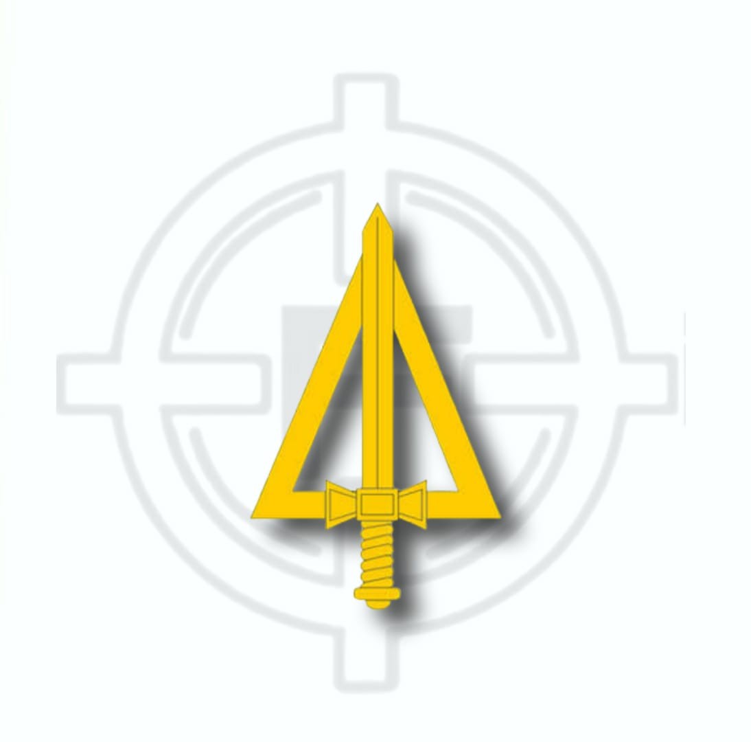 Distintivo de gola feito em metal dourado. Produto de acordo com o RUE.