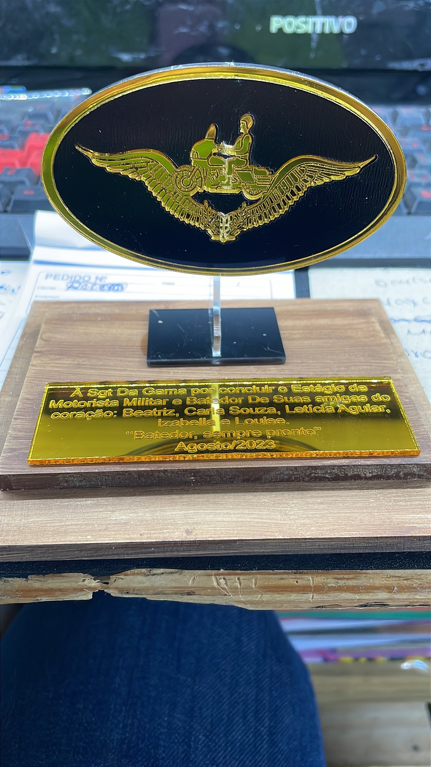 plaquinha em acrilico gravada com a mensagem que desejar